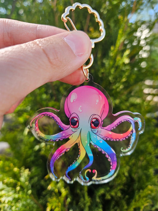 Rainbow Octopus Keychain